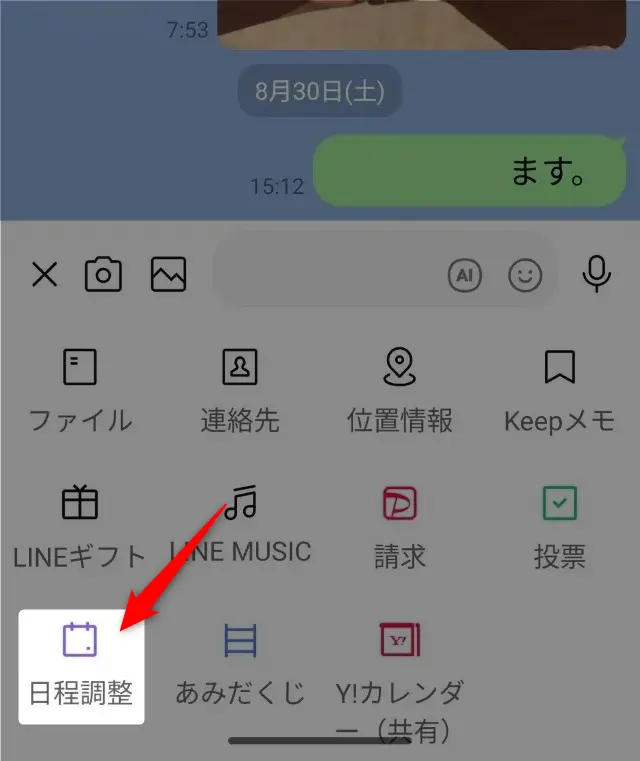 「+」→「日程調整」で候補日を3〜4つ出して送るだけ。