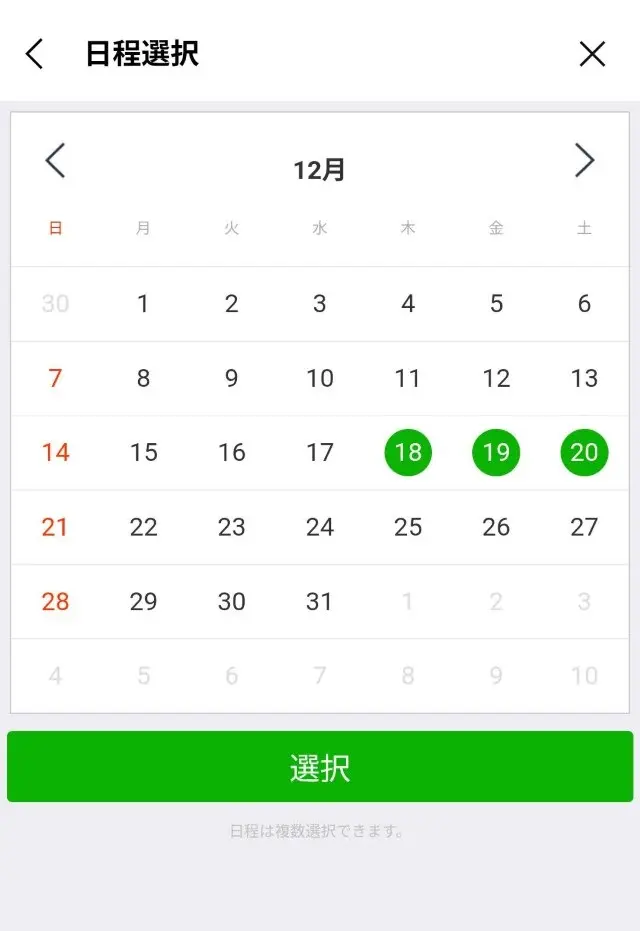 候補日を複数選択して、「選択」ボタンを押すとイベントの実施候補日が反映されます。