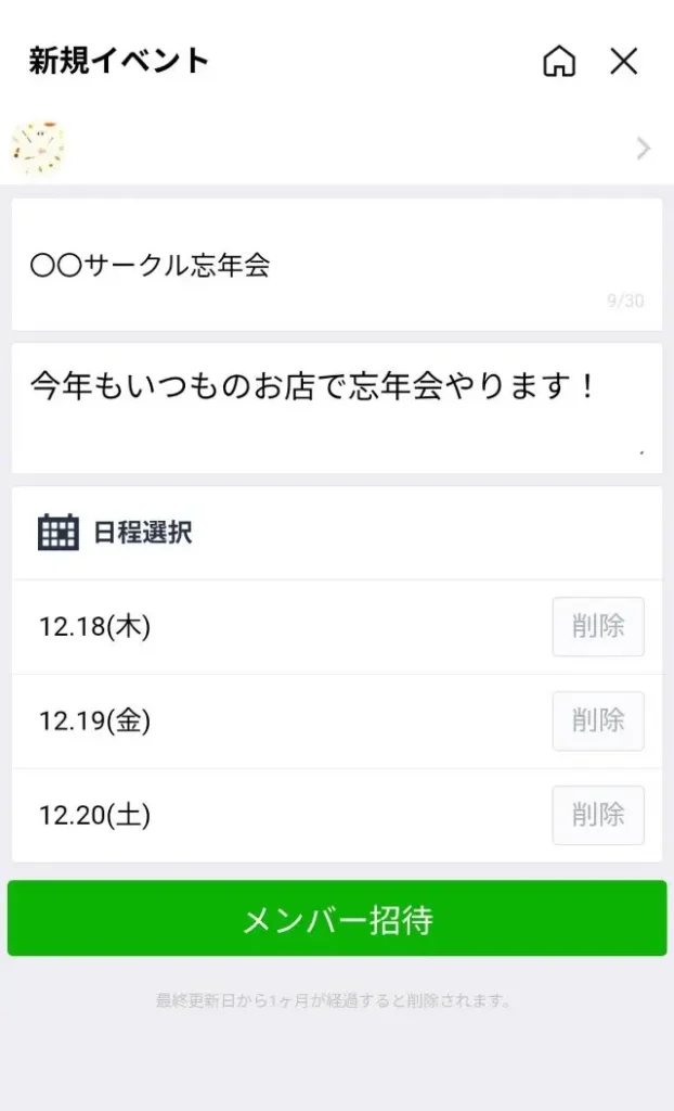 筆者である私は、学生時代の部活仲間との忘年会を開催した際にLINEの日程調整を使いました。