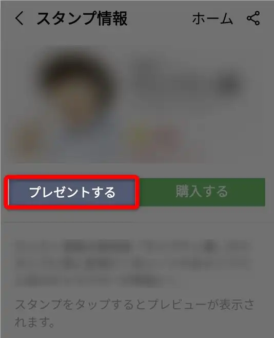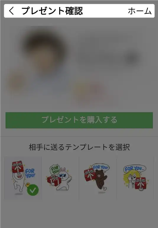 相手が絶対に選びそうにないスタンプ・着せかえ・絵文字を選んで、「プレゼントする」をタップ