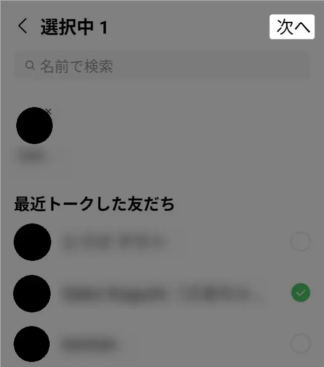 グループの構成メンバーを友だちの中から選択して「次へ」をタップ