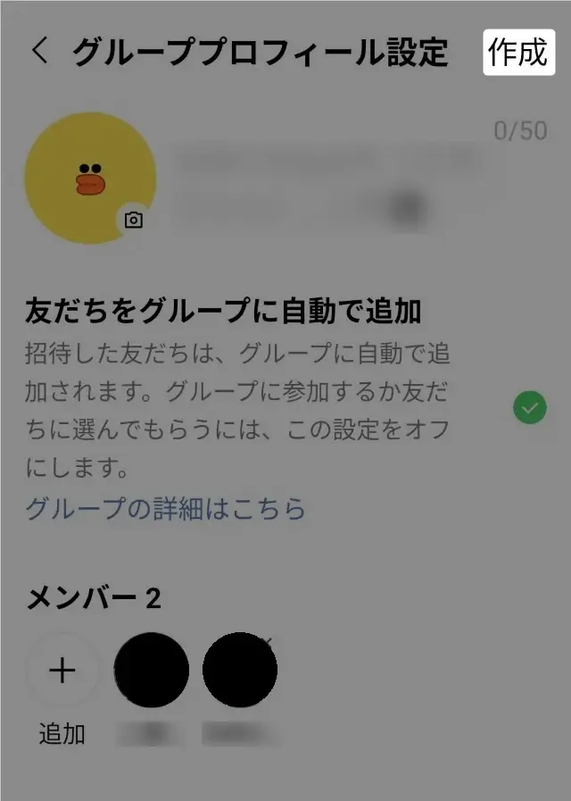 グループ名を作成して作成ボタンを押せば完了です。グループ名は後から変えられます(後述)。