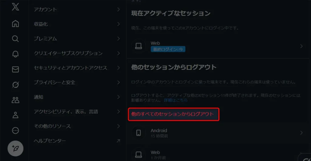 これでXからログアウトすることが可能になります。アカウントの乗っ取りが心配になったら、この方法を試してください。